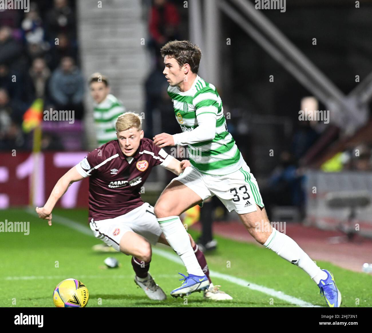 Tynecastle Park Edinburgh Scotland Uk 26th Jan 22 Hearts Vs Celtic Cinch Premiership Match Alex Cochrane 17 Von Heart Of Midlothian Fc Mit Matt O Riley 33 Von Celtic Fc Credit Eric Mccowat Alamy Live News